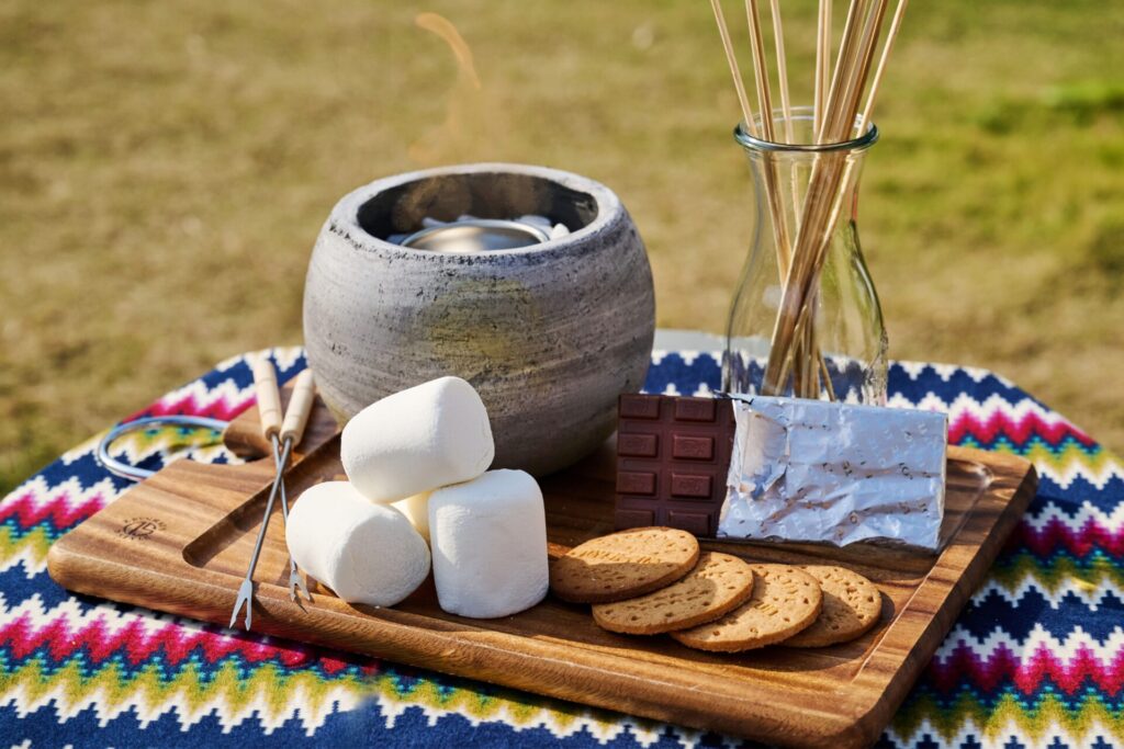 【やんばる焚火Nights】ガーデンで愉しむ焼きマシュマロ スモアセット¥1,500税込 のご案内 / ご宿泊のお客様限定